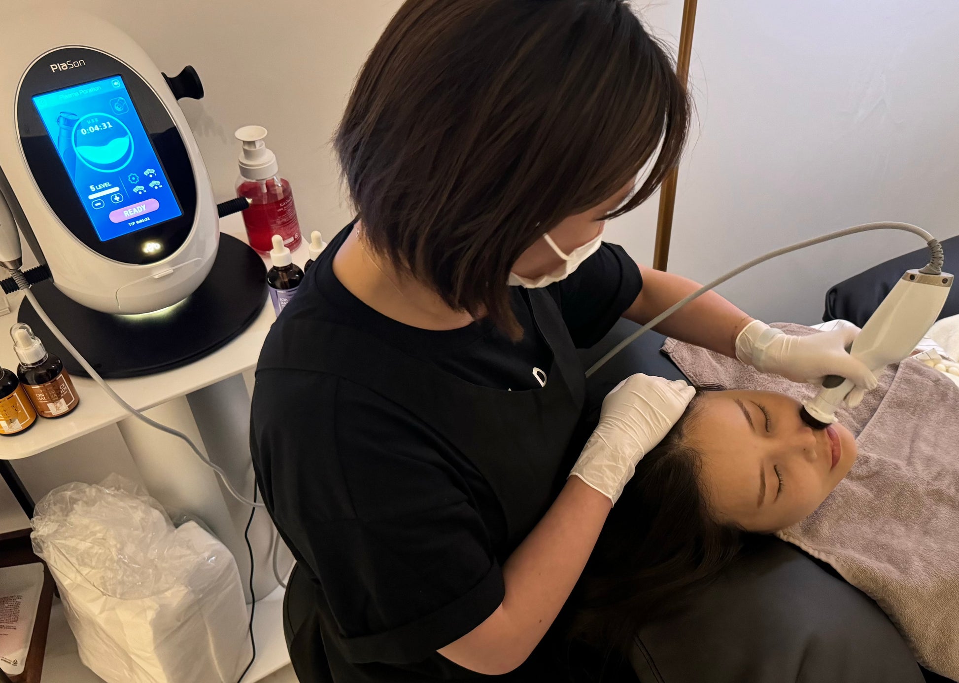 肌を傷つけずに強力な電気エネルギーによって細菌を滅菌したり、美容液の浸透率がなんと2000倍にもなって肌の深部に届きし肌力がupするマシンです🤩